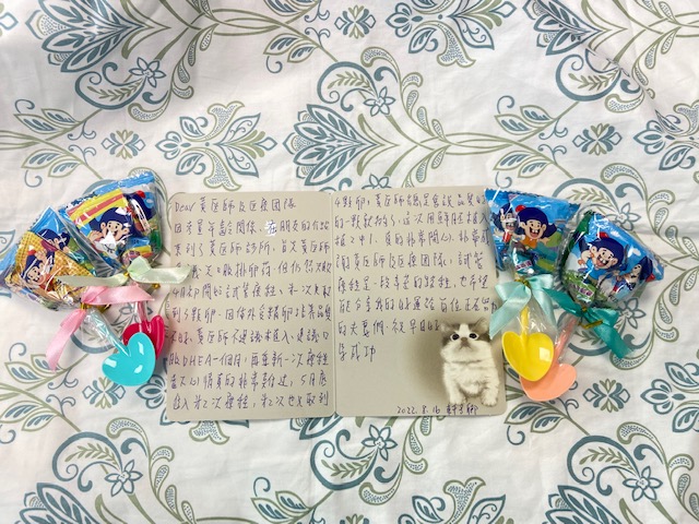 非常感謝黃醫師及醫療團隊,試管療程是一段辛苦的路程,也希望能分享我的好孕給每位正在努力的夫妻們,早日好孕成功!