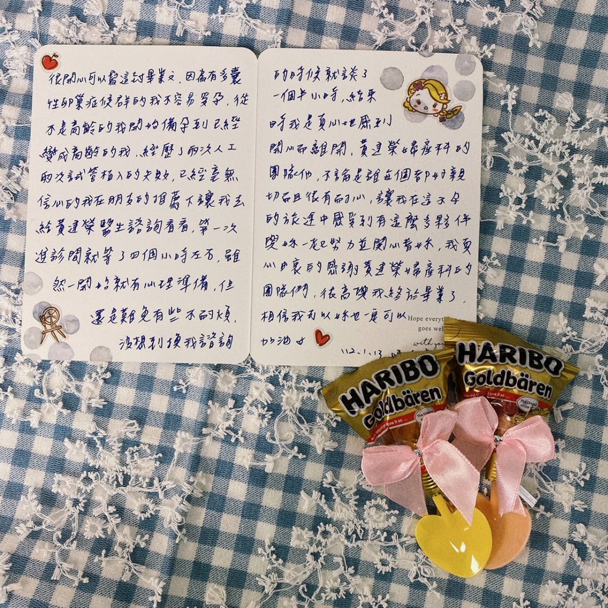 很開心可以寫這封畢業文,因為有多囊性卵巢症候群的我不容易受孕,從不是高齡的我開始備孕到已經變成高齡的我,經歷了兩次人工、兩次試管植入的失敗,已經毫無信心的我在朋友的推薦下讓我去給黃建榮醫生諮詢看看,第一次 進診間就等了四個小時左右,雖然一開始就有心理準備,但還是難免有些不耐煩,沒想到換我諮詢的時候就談了一個半小時,結束時我是真心地感到開心而離開,黃建榮婦產科的團隊們,不論是誰每個都好親切而且很有耐心,讓我在這不孕的旅途中感受到有這麼多夥伴與妳一起努力並關心著妳,我真心由衷的感謝黃建榮婦產科的團隊們,很高興我終於畢業了,相信我可以妳也一定可以 加油~