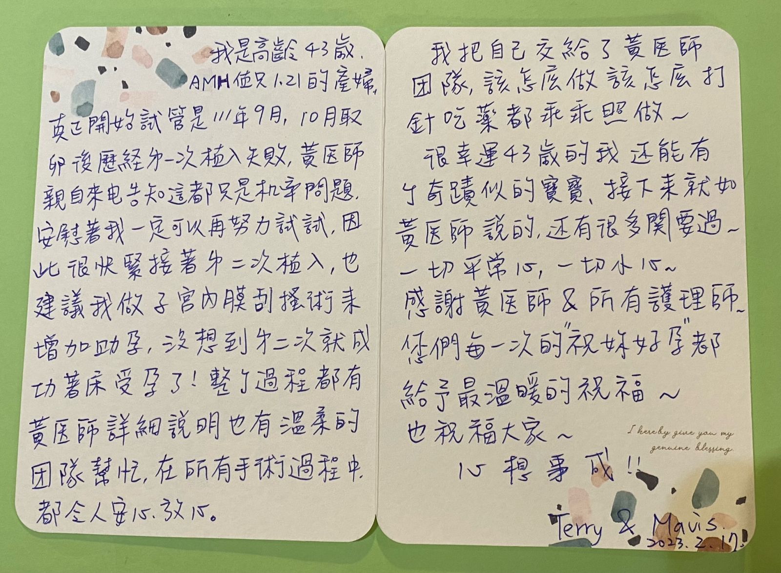 感謝黃醫師&所有護理師您們每一次的“祝妳好孕”都給予最溫暖的