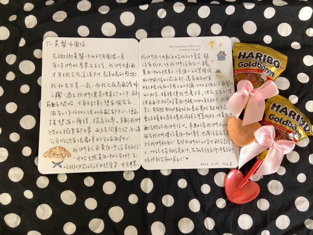 先謝謝黃醫師與所有團隊人員,有你們的專業及支持我們夫妻量才有機會寫這張卡片,表達由衷的感謝。