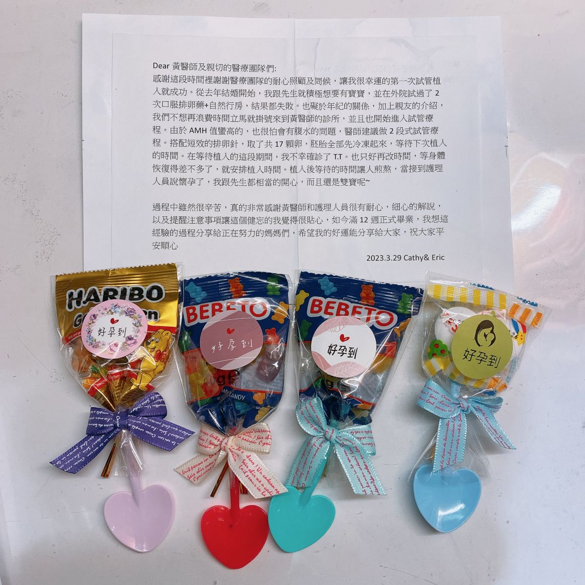 感謝這段時間裡謝謝醫療團隊的耐心照顧及問候,讓我很幸運的第一次試管植入就成功。