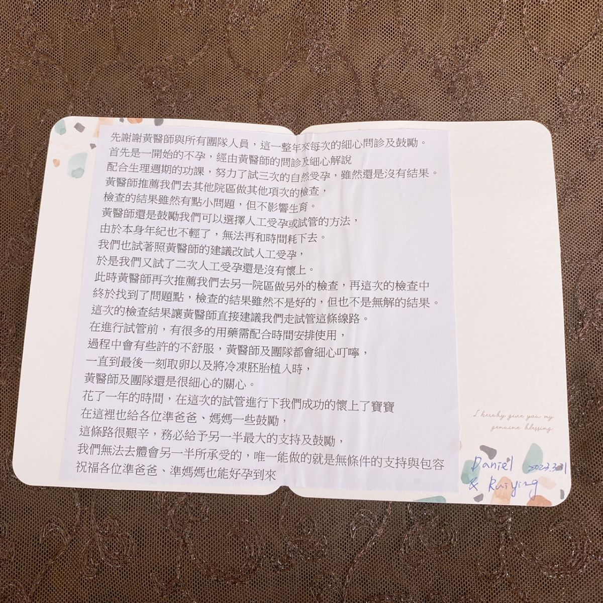 花了一年的時間,在這次的試管進行下我們成功的懷上了寶寶,在這