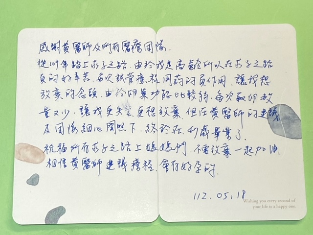 由於卵巢功能比較弱,每次取卵數量又少,讓我更失望更想放棄,但在黃醫師的建議及團隊細心的關照下,終於在47歲畢業了!