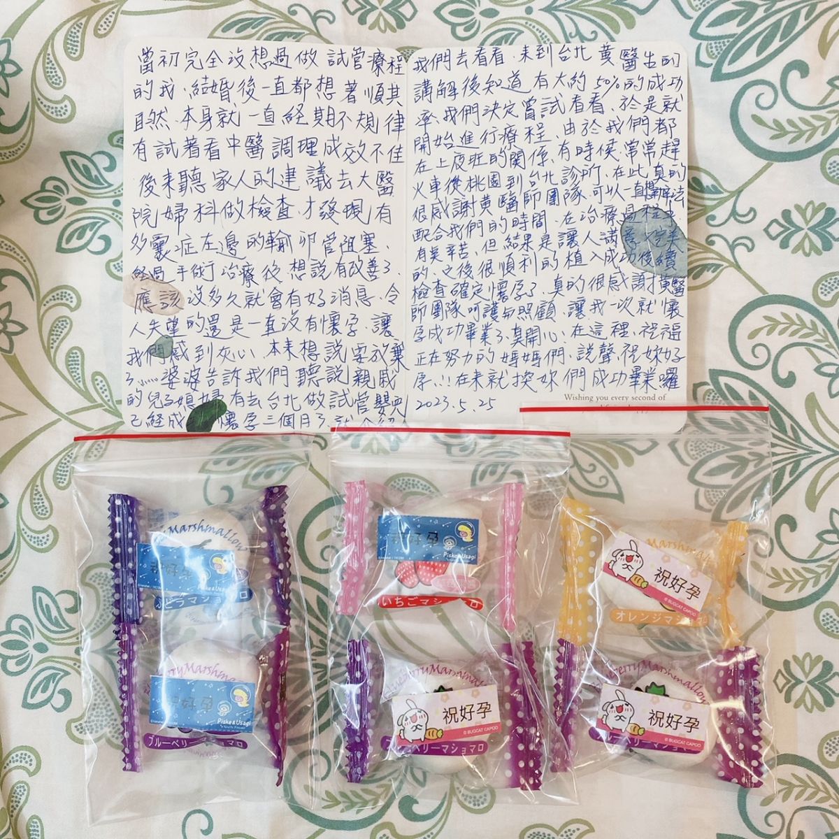 婆婆告訴我們聽說親戚的兒子媳婦有去台北做試管嬰兒,已經成功懷孕三個月了,就介紹我們去看看,來到台北黃醫生的講解後知道有大約50%的成功率,我們決定嘗試看看,於是就開始進行療程,由於我們都在上夜班的關係,有時候常常趕火車從桃園到台北診所,在此真的很感謝黃醫師團隊,可以一直想辦法配合我們的時間,在治療過程中有點辛苦,但結果是讓人滿意又完美的,之後很順利的植入成功,後續檢查確定懷孕了,真的很感謝黃醫師團隊呵護與照顧,讓我一次就懷孕成功畢業了,真開心!在這裡,祝福正在努力的媽媽們,說聲:祝妳好孕!!!