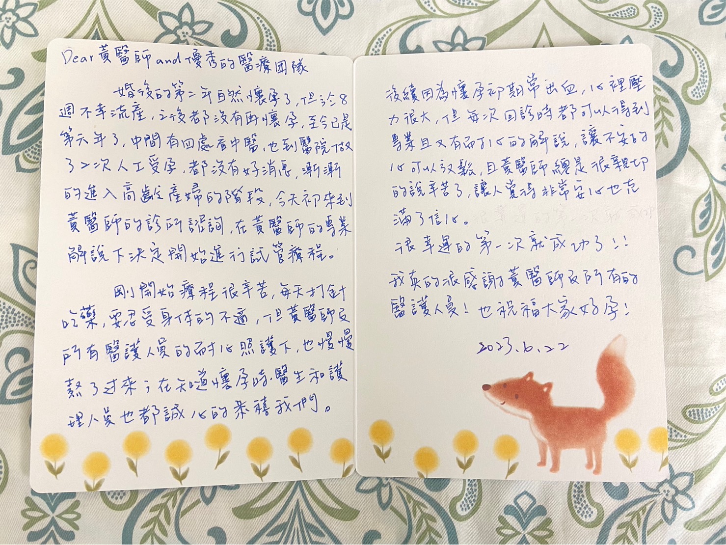 Dear黃醫師and優秀的醫療團隊: