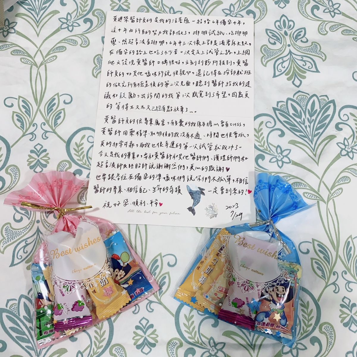 今天是我的畢業日,要和黃醫師和其他醫師們、護理師們和超音波師及胚胎師說謝謝您們,真心的感謝♡