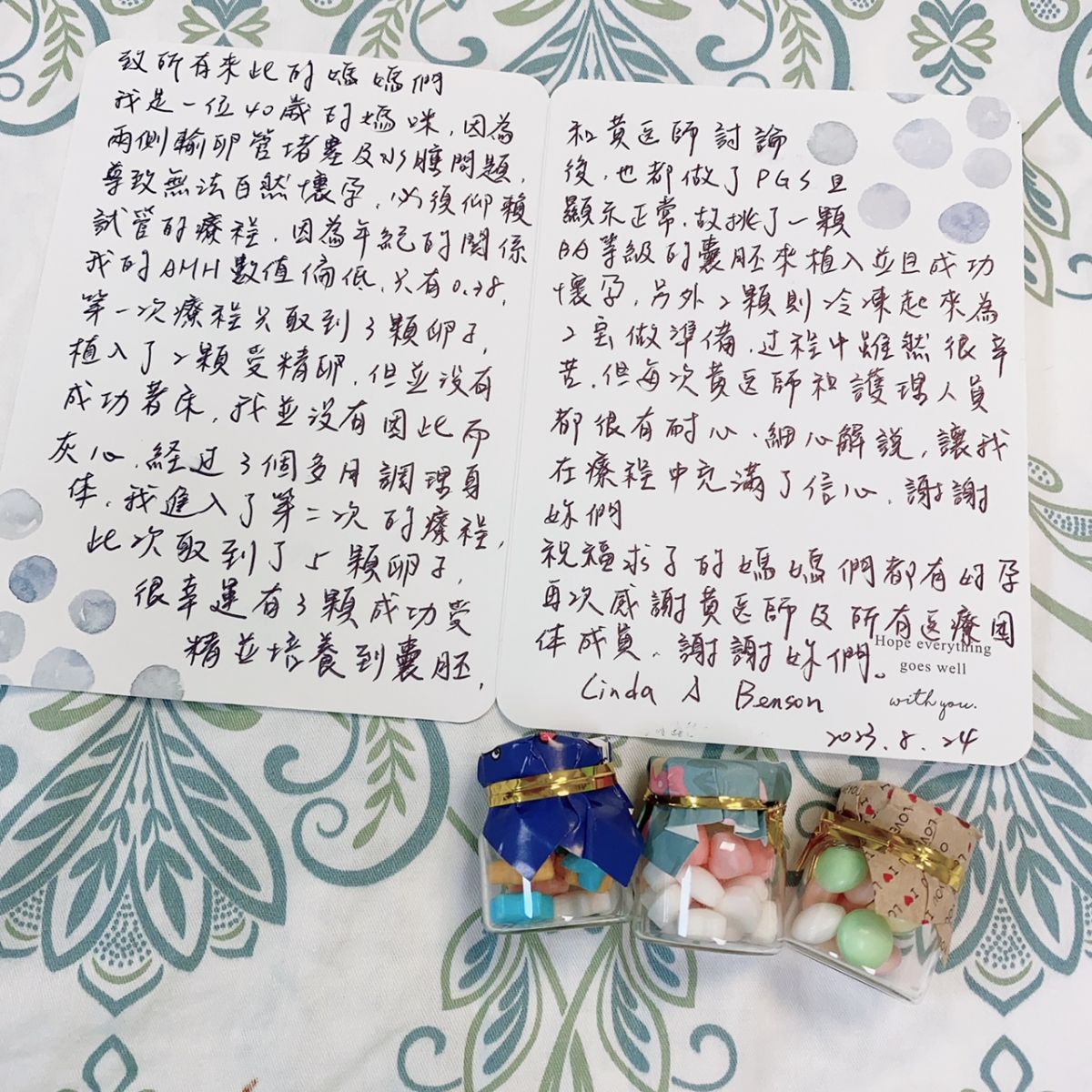 祝福求子的媽媽們都有好孕,再次感謝黃醫師及所有醫療團體成員,謝謝妳們。 Cinda& Benson 2023.8.24