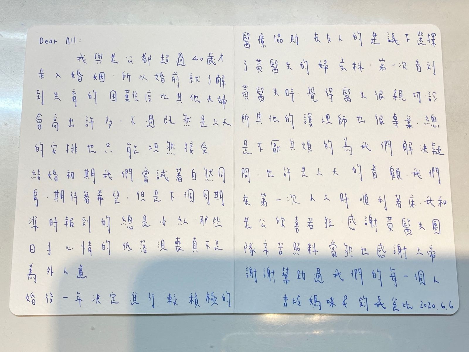 我與老公都超過40歲才步入婚姻,所以婚前就了解到生育的困難度比其他夫婦會高出許多,不過既然是上天的安排也只能坦然接受。
