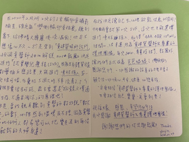 感謝您們,一切感謝的樺真的太多太多了,願各位一切順心、平安、健康、心想事成,一定要相信黃建榮醫師&專業的護理團隊,也要相信自己,寶寶一定會來!