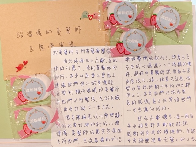 再次感謝黃主任及團隊帶領我們見證生命的奇蹟,也祝福所有努力備孕的朋友邁向成功。