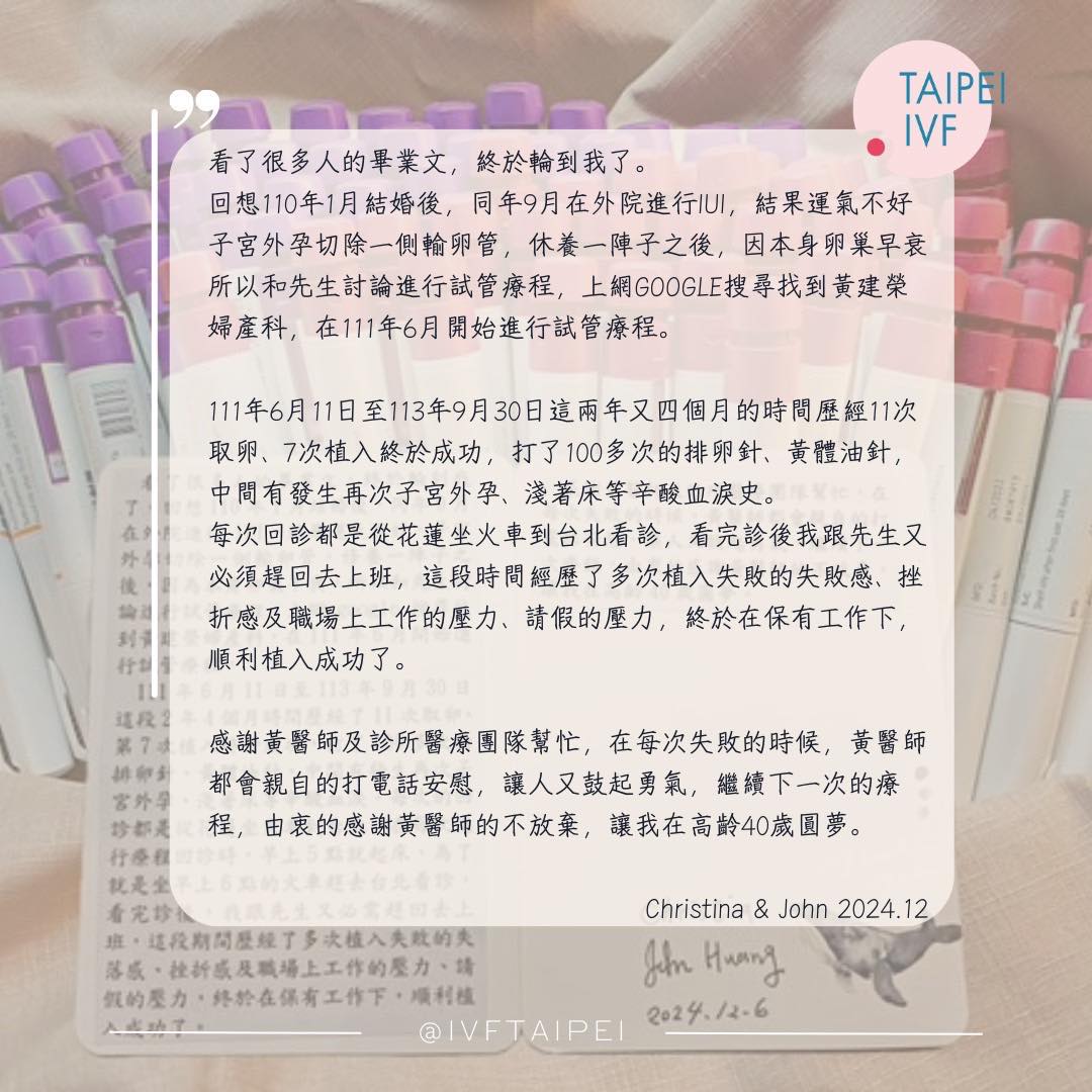 為了圓夢,他們決定北上,來到五星好評、全台知名的TAIPEI IVF黃建榮婦產科診所尋求幫助。