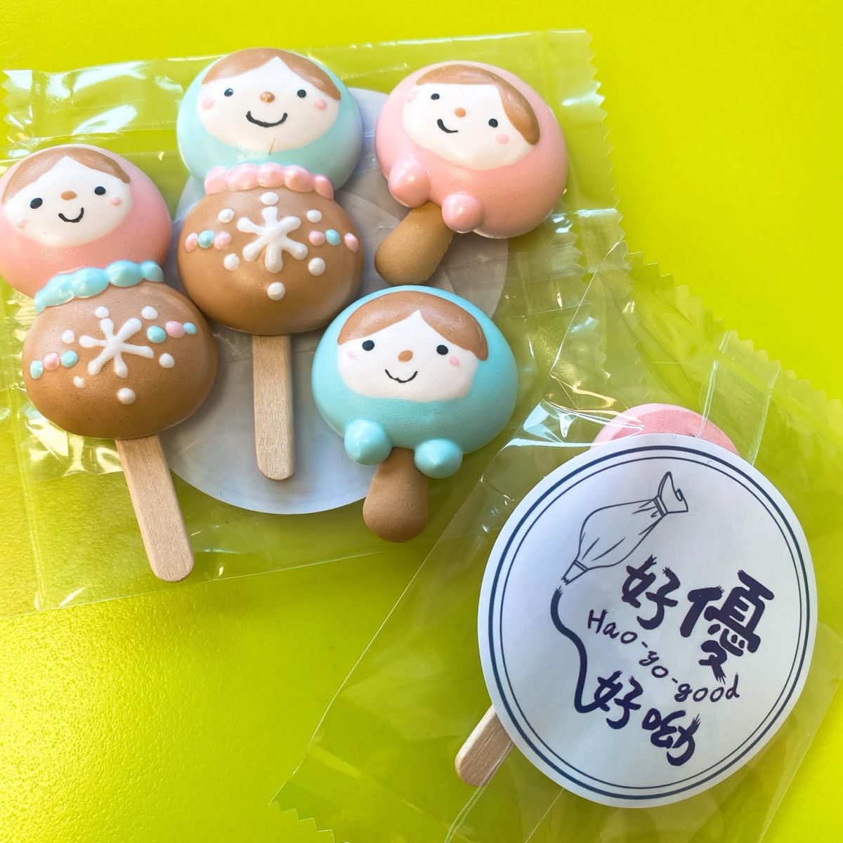 這位好朋友準備的畢業糖是自己親手做的蛋白糖霜,很用心的糖霜的模樣是可愛的男娃娃與女娃娃,除了跟大家分享他的好孕氣之外,也希望大家能早日得”子”得”女”。