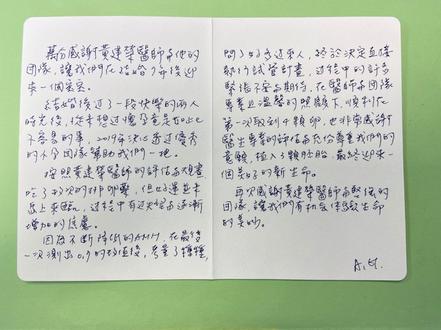 再次感謝黃建榮醫師與堅強團隊,讓我們有機會體驗生命的美妙。