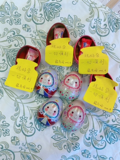 今天他們順利懷孕滿三個月畢業了,也非常用心的準備好孕蛋且每一顆裡面都有她們親手寫的好孕紙條要送給大家。