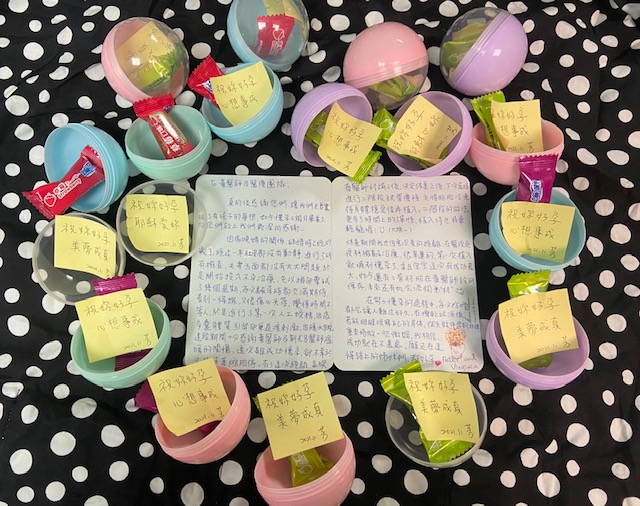 她準備的好孕糖很特別,用一顆顆的扭蛋細心包裝,在裡面也附上她親手寫的祝福打氣小紙條。