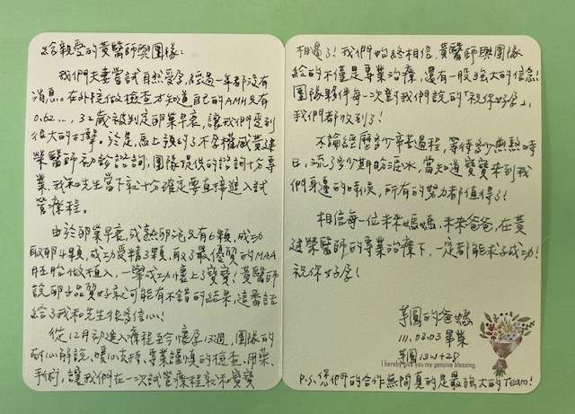 現在她懷孕滿三個月要從我們診所畢業了!希望她的分享可以帶給還在努力中的各位好孕,也祝福她未來孕產期一切平安順利。