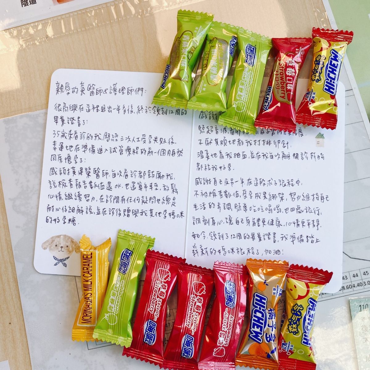 感謝黃建榮醫師,每次看診都鼓勵我,說檢查報告數值還OK,也還算年輕,放鬆心情,繼續努力,在診間有任何的疑問也總是耐心仔細解說,並在診後贈與我其他孕媽咪的好孕糖。