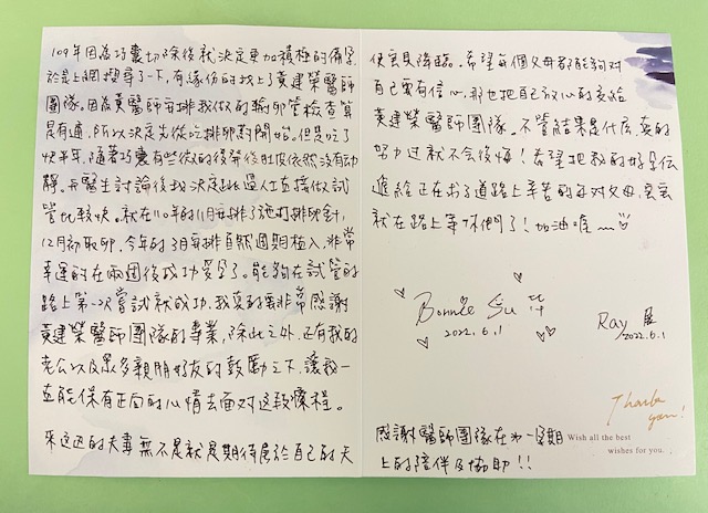 109年因為巧囊切除後就決定更加積極的備孕,於是上網搜尋了一下,有緣分的找上黃建榮醫師團隊。