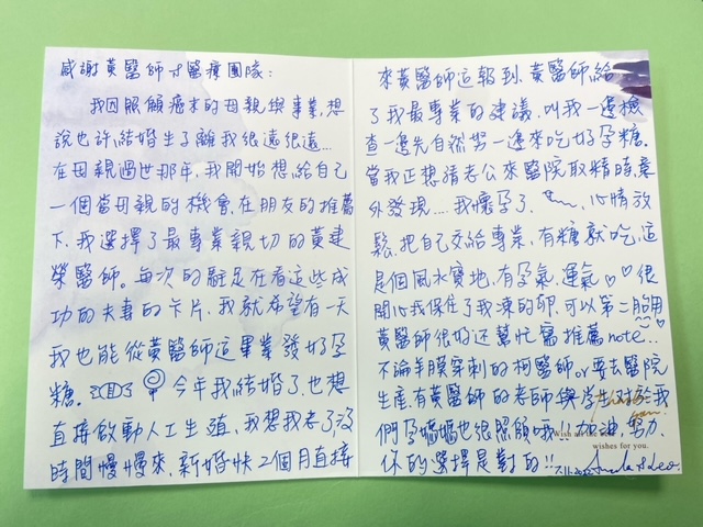 每次的駐足在看這些成功的夫妻的卡片,我就希望有一天我也能從黃醫師這畢業發好孕糖。