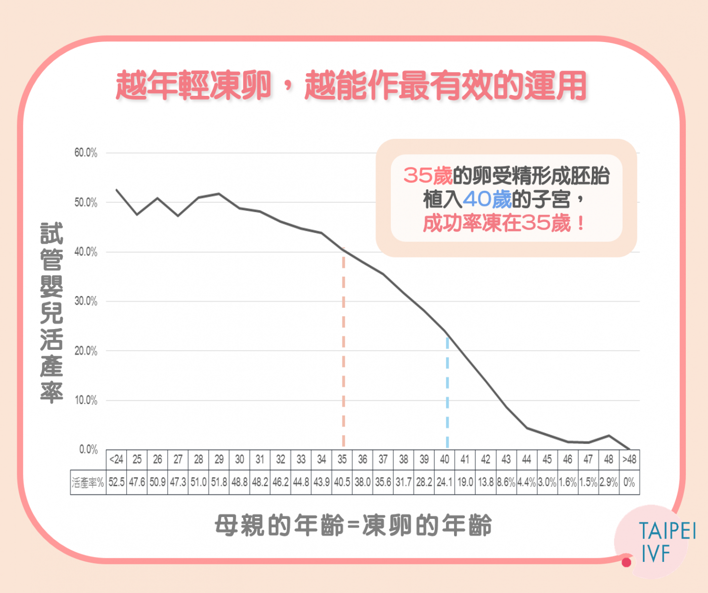 成功率與年齡密切相關。越年輕進行凍卵,未來成功懷孕的機率越高。冷凍的卵子在解凍後配合體外受精技術,懷孕的機會相對提高。