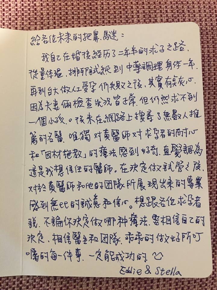 來在網路上搜尋了無數人推薦的名醫,唯獨對黃醫師對求孕